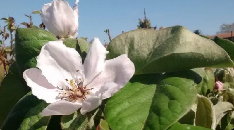 Árbol frutal caduco de tamaño pequeño, hojas grandes y ovaladas de color verde oscuro, mas claras en el envés. Florece en primavera, flores de color verdoso o blanco cremoso, frutos globosos de color amarillo-anaranjado. Situación soleada, suelo fértil, profundo y bien drenado. Riegos moderados.