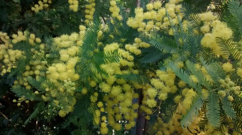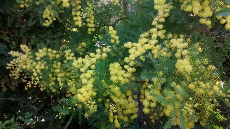 Acacia Dealbalta es una árbol ornamental de hoja perenne y rápido crecimiento, originario de Australia, puede llegar a medir diez metros de altura. Su tronco es liso de color gris muy ramificado, sus ramas son muy bifurcadas, sus hojas son verde plateado o grisáceo muy divididas, se asemejan a las hojas de los helechos.