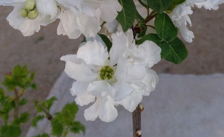 Exochorda es una planta arbustiva perenne, de hoja caduca, perteneciente a la familia Rosaceae y al genero Exochorda, es originaria de China. Es una planta arbustiva de crecimiento vertical, ligeramente arqueado y vigoroso, aunque crece lentamente, los ejemplares adultos pueden llegar a alcanzar mas de dos metros de altura en algunas variedades. Entre ellas están, Exochorda Serratifolia y Exochorda Racemosa y variedades como Exochorda Macrantha que se cultiva frecuentemente como planta ornamental.