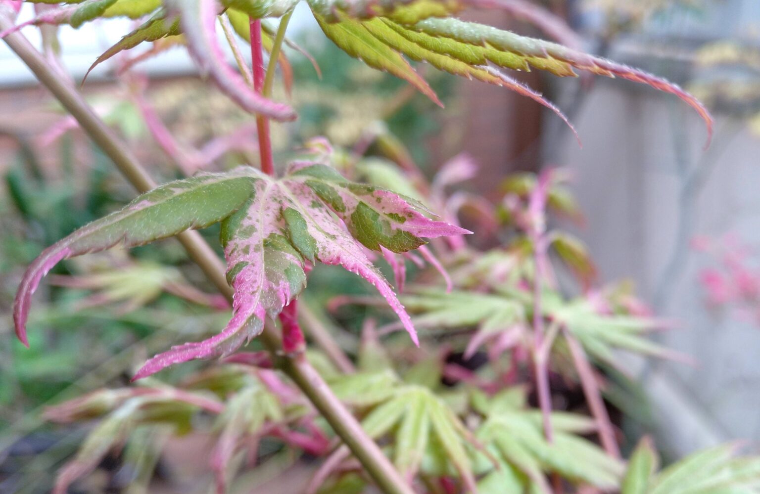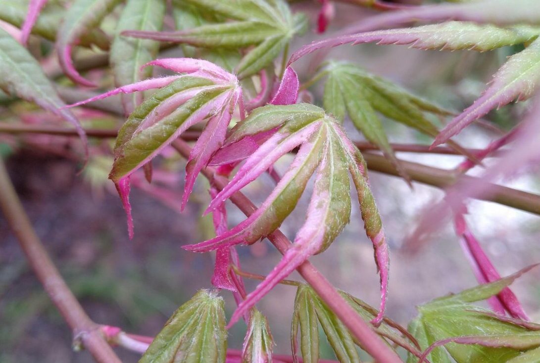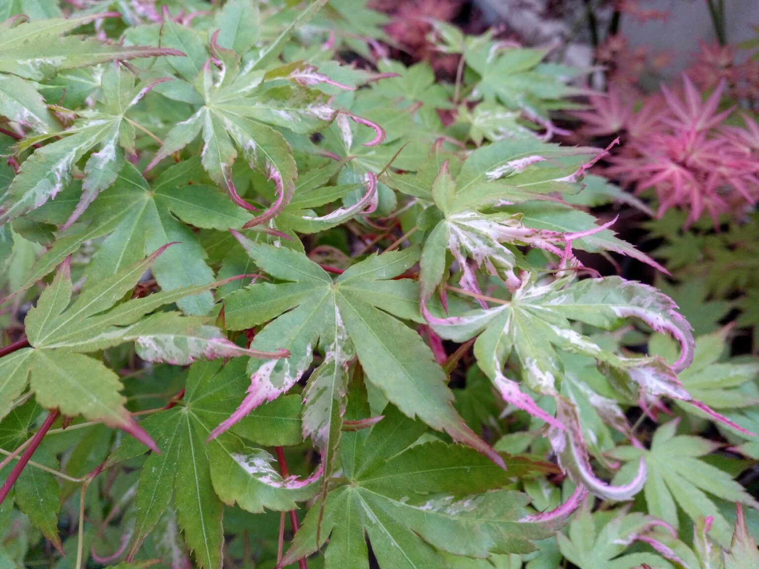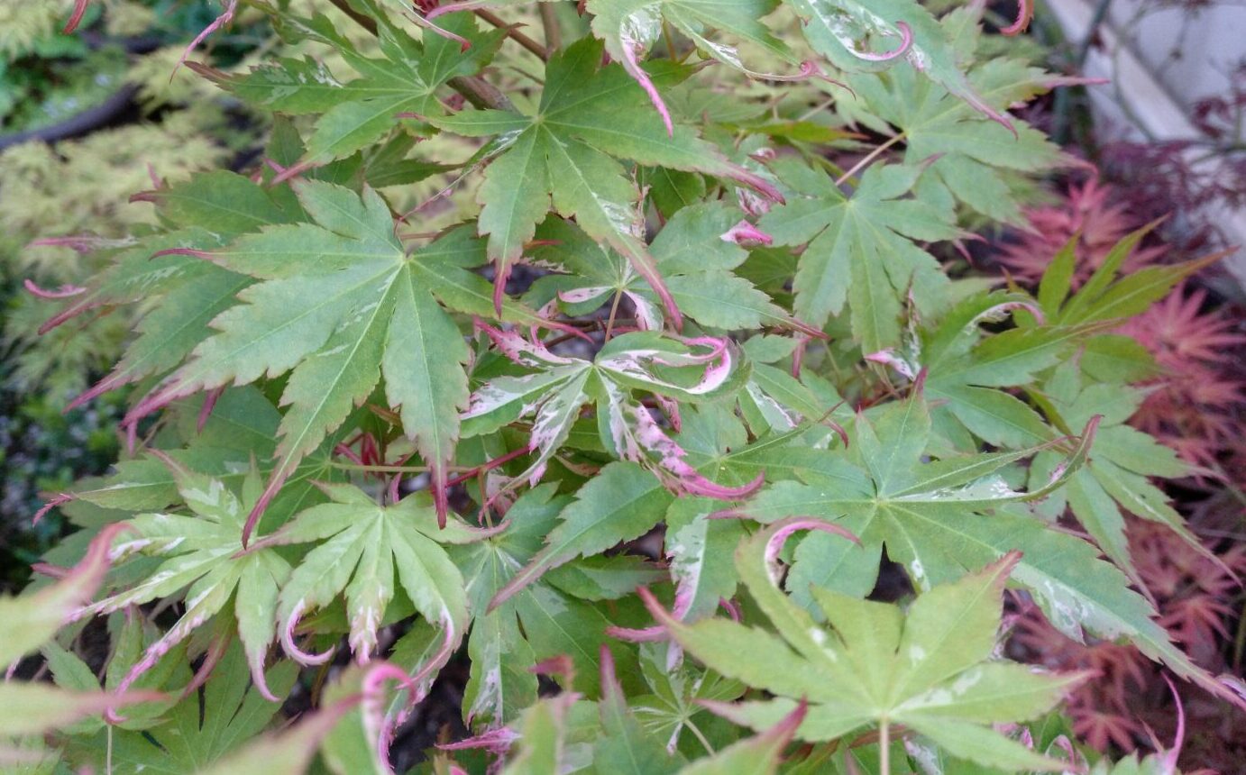 Acer Asahi Zuru es una de las maravillosas variedades de Acer Palmatun, es una planta muy decorativa y ornamental, por el color de sus hojas, verde, blanco y rosado, especialmente explosivo en otoño, cuando adquieren tonos anaranjados y rojizos antes de caer.
