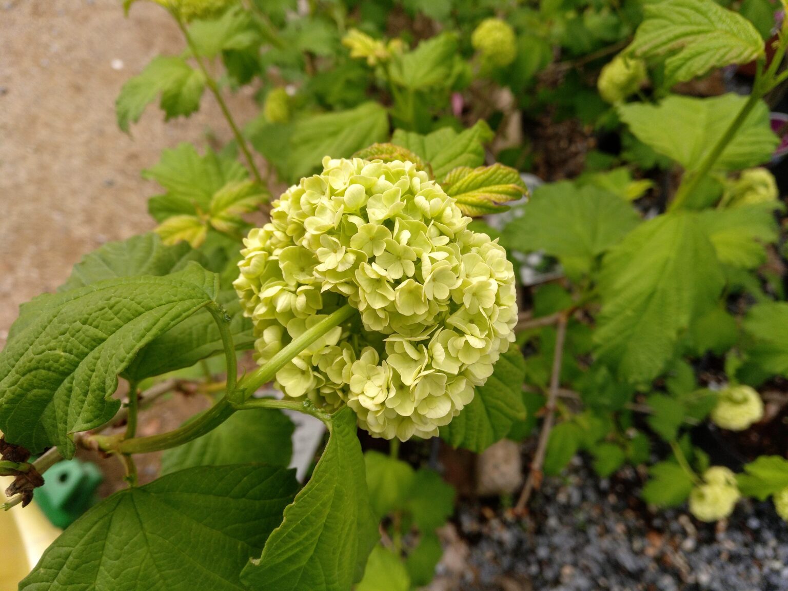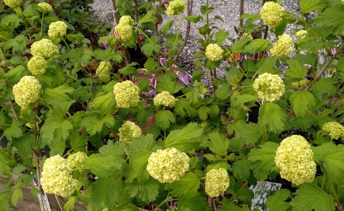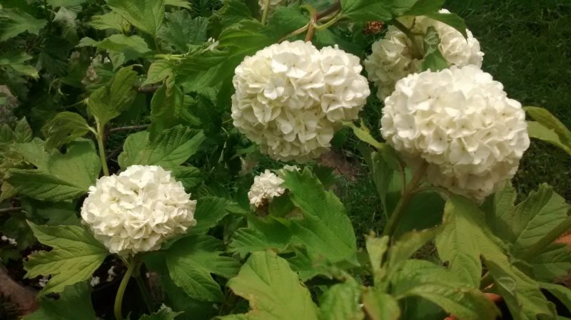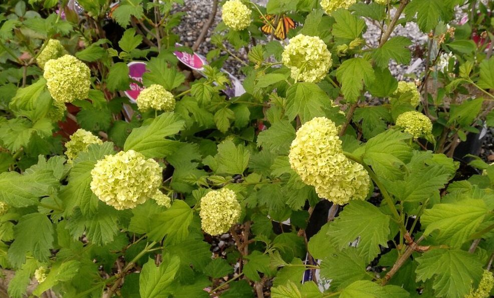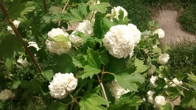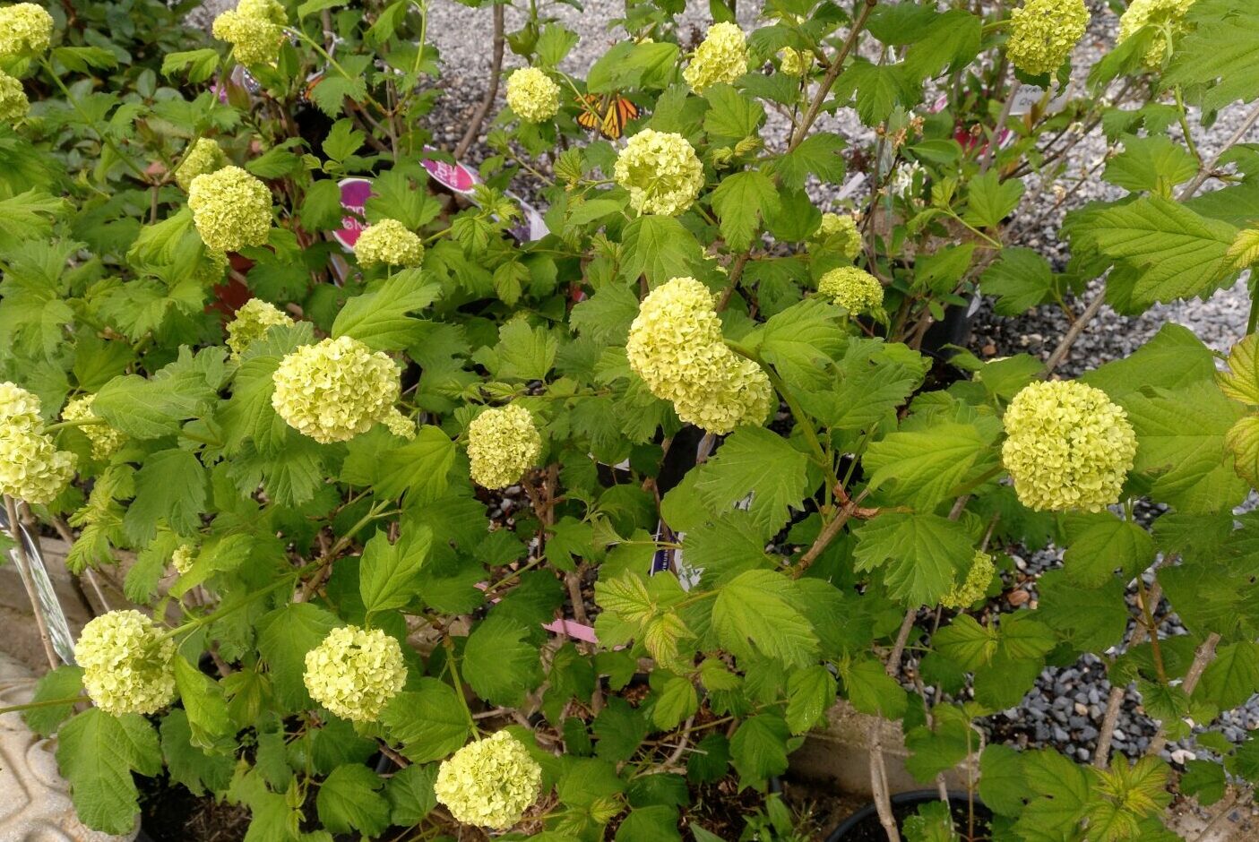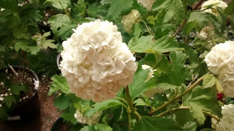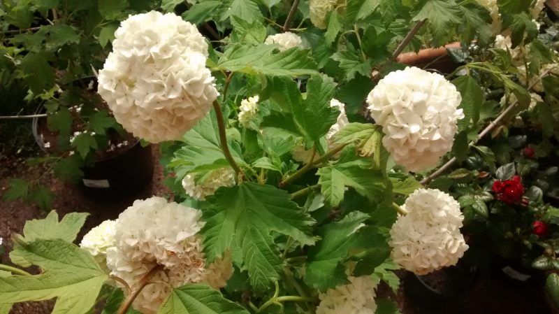 El Viburniun Opulus o Bola de Nieve, es un arbusto de hoja caduca originario de Europa, Asia Central y Menor y Noroeste de África. Es un arbusto que puede alcanzar alturas de cuatro metros, aunque se suele controlar en altura mediante podas. Sus hojas son alargadas de color verde, suelen ser lobuladas en tres o cinco partes. El extremo de las hojas es dentado y el envés algo velloso, de nerviaciones muy visibles.