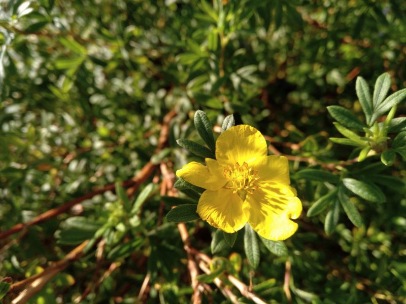 Potentilla Fruticosa es una planta arbustiva perenne, perteneciente a la familia Rosaceae, es originaria algunas zonas de Europa, Islandia, Suecia, Reino Unido y Pirineos. Es una planta muy ramificada de crecimiento redondeado, mide entre treinta y cerca de un metro de altura y cincuenta centímetros de diámetro. Los tallos son muy numerosos de color marrón rojizo.