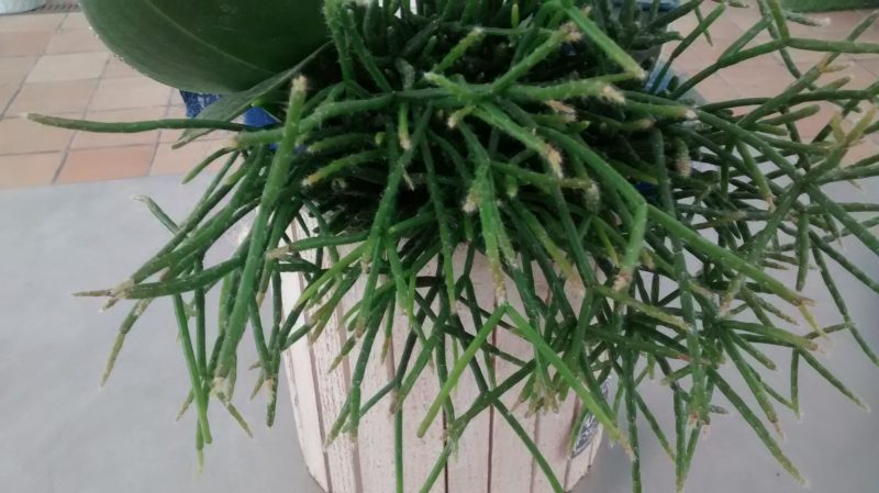 Cactus de exterior en climas con inviernos suaves. Adecuada para cestas colgantes, o macetas grandes redondeadas de baja altura. Forma una elegante cascada de finas y delicadas ramas que pueden llegar a caer hasta un metro o mas. Este cactus de muy bajo mantenimiento es perfecto para cestas colgantes debido a sus tallos colgantes largos y elegantes.