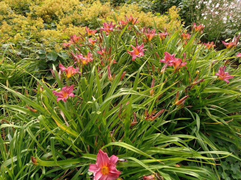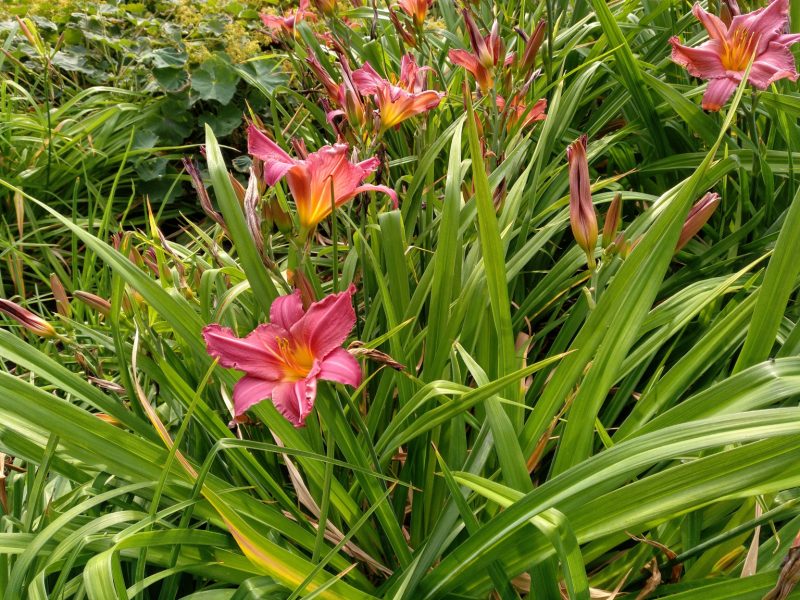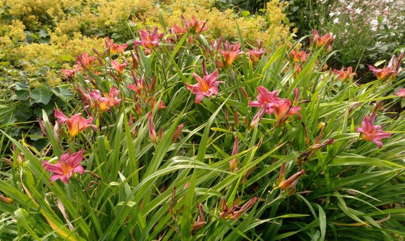 Es recomendable retirar las flores secas y cortar las varas florales desde su base cuando todas las flores se hayan marchitado, así potenciaremos nuevas floraciones y mantendremos las plantas saludables y mas bellas. Cortar las hojas a medida que se vayan secando en otoño hasta el nivel del suelo. Resiste muy bien las temperaturas altas y la humedad del verano pero necesita riegos regulares, no resiste las temperaturas bajas por lo que en otoño sus hojas se secan y los rizomas subterráneos permanecen durmientes bajo tierra, para brotar de nuevo en primavera con la subida de las temperaturas.
