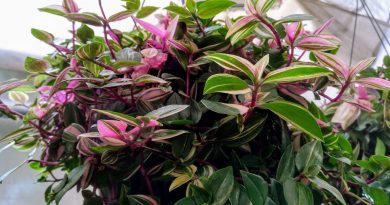 Puede florecer en distintas épocas del año, dependiendo de las condiciones de cultivo. Las inflorescencias son muy llamativas, de color rosa intenso, tienen forma de espiga con numerosas brácteas florales con apariencia inflada, poco a poco la inflorescencia madura dejando ver las flores que se desarrollan en el interior de las brácteas. Las flores son pequeñas, de color lila o violeta.