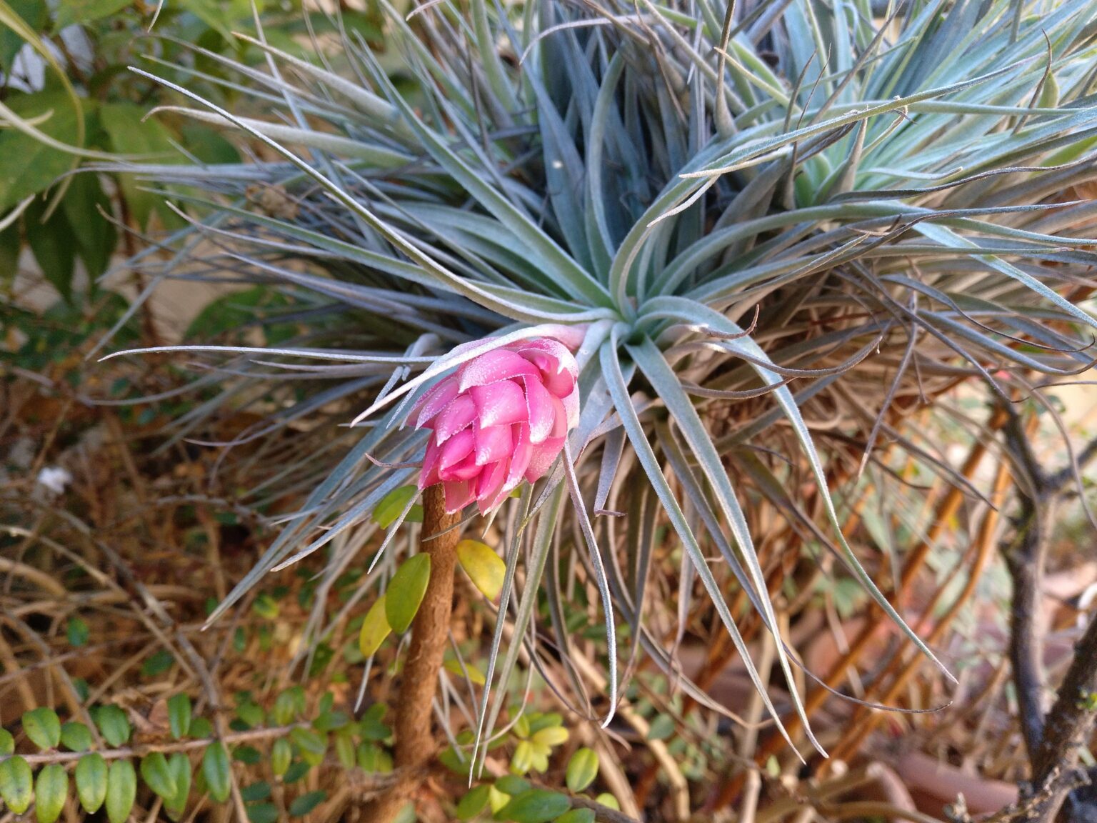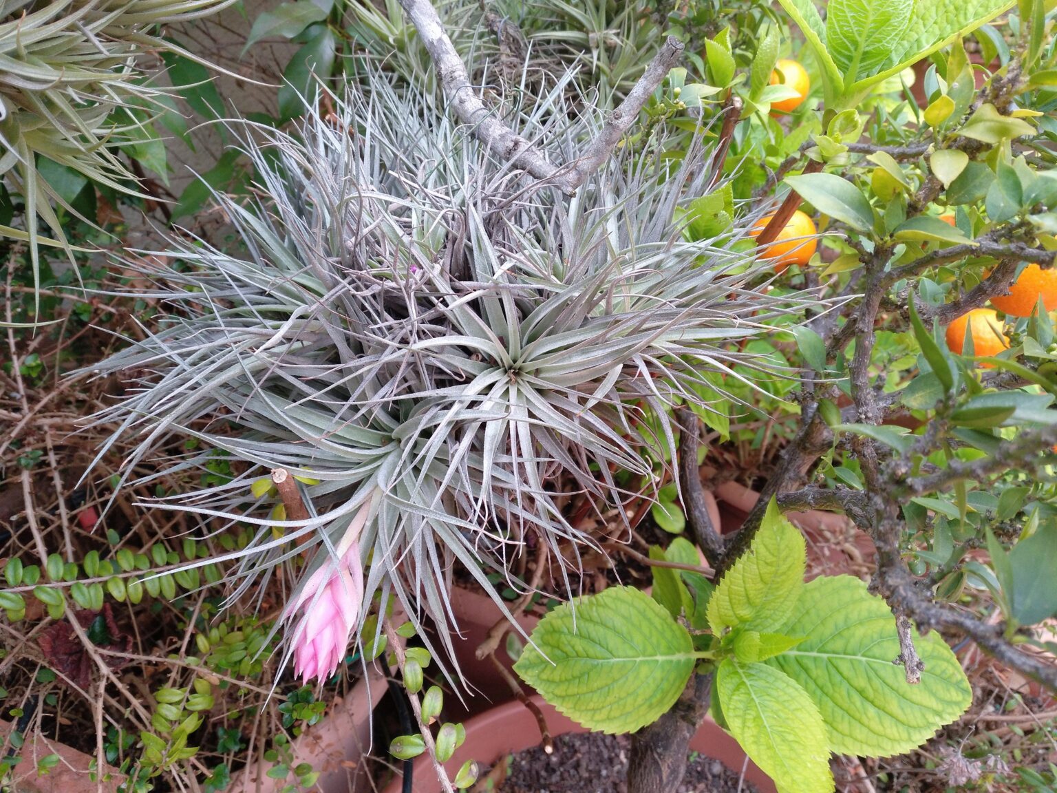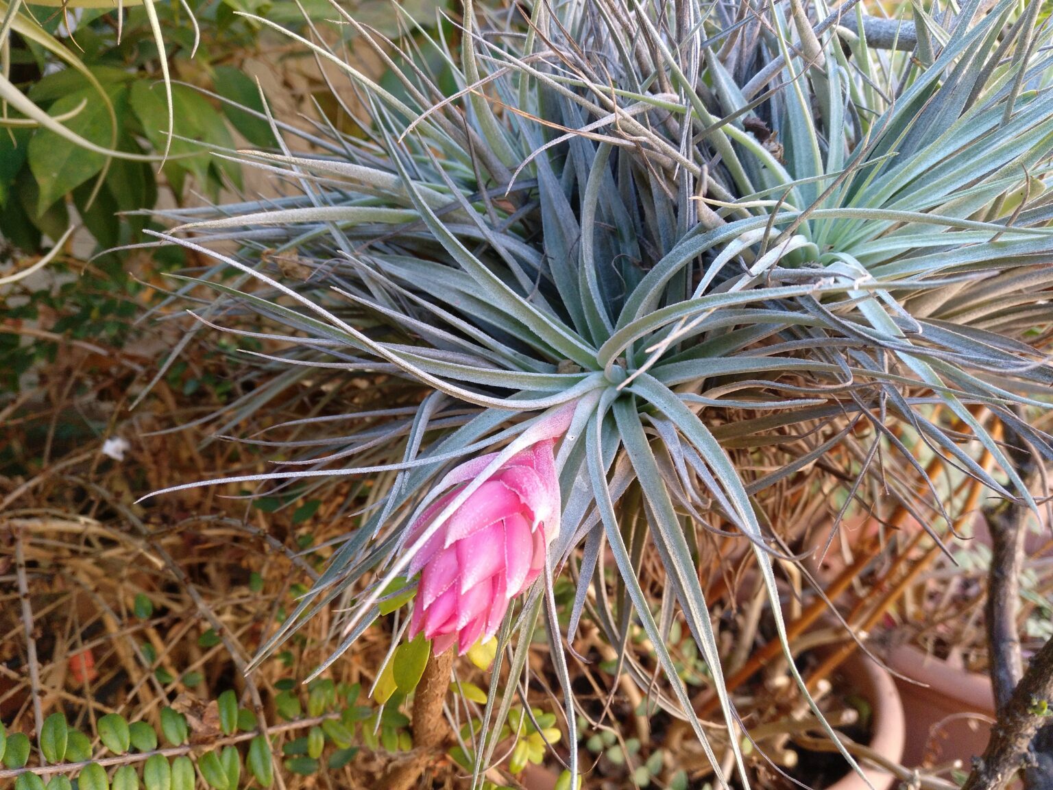 No necesitan poda, las hojas inferiores se secan y se reducen, formando parte de la planta, si intentamos separarlas podemos ocasionar serios desperfectos en la planta, solo retiraremos del grupo, las rosetas secas totalmente o enfermas. En climas de temperaturas invernales moderadas, es recomendable cultivar las plantas en exterior para que dispongan de una adecuada luminosidad, nutrientes y humedad. En climas de inviernos fríos cultivaremos las plantas en interior proporcionándoles mucha luz y humedad ambiental, pulverizaremos las plantas frecuentemente con productos fertilizantes para Tillandsias, puesto que no pueden adsorber nutrientes del aire.